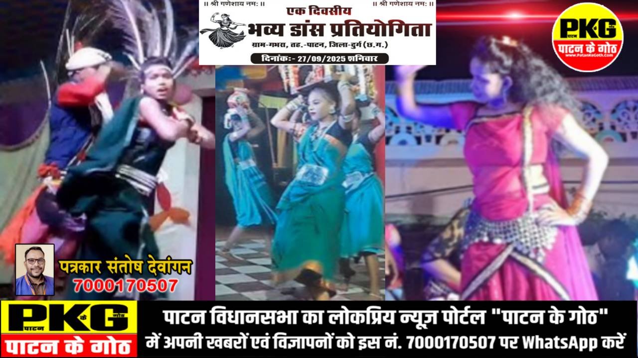पाटन (दुर्ग): 25 सितंबर।नवरात्रि पर्व के पावन अवसर पर तहसील पाटन के ग्राम गभरा (करगा) में “नव जागरण दुर्गा उत्सव समिति” तथा समस्त ग्रामवासियों के सहयोग से दिनांक 27 सितंबर 2025, शनिवार को एक दिवसीय भव्य रिकॉर्डिंग डांस प्रतियोगिता का आयोजन किया जा रहा है। यह कार्यक्रम शाम 7 बजे से प्रारंभ होगा।