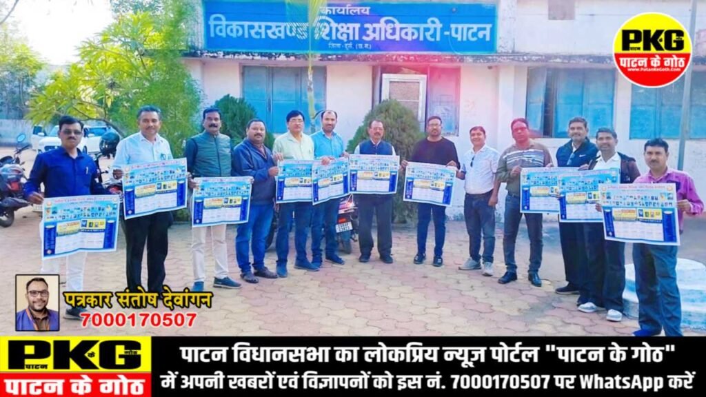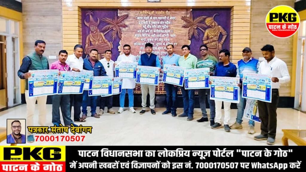 पाटन : छत्तीसगढ़ सहायक शिक्षक/समग्र शिक्षक फेडरेशन ब्लॉक इकाई पाटन द्वारा तैयार किए गए वार्षिक कैलेंडर 2026 का आज रेस्ट हॉउस पाटन में विमोचन किया गया। कार्यक्रम में संगठन के पदाधिकारियों, शिक्षक संवर्ग तथा गणमान्य नागरिकों ने उत्साहपूर्वक भाग लिया।