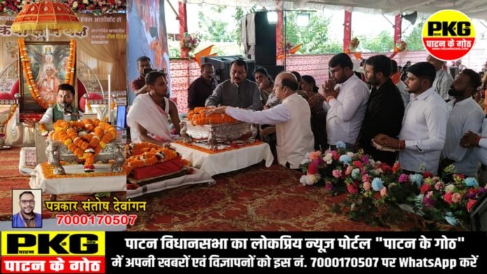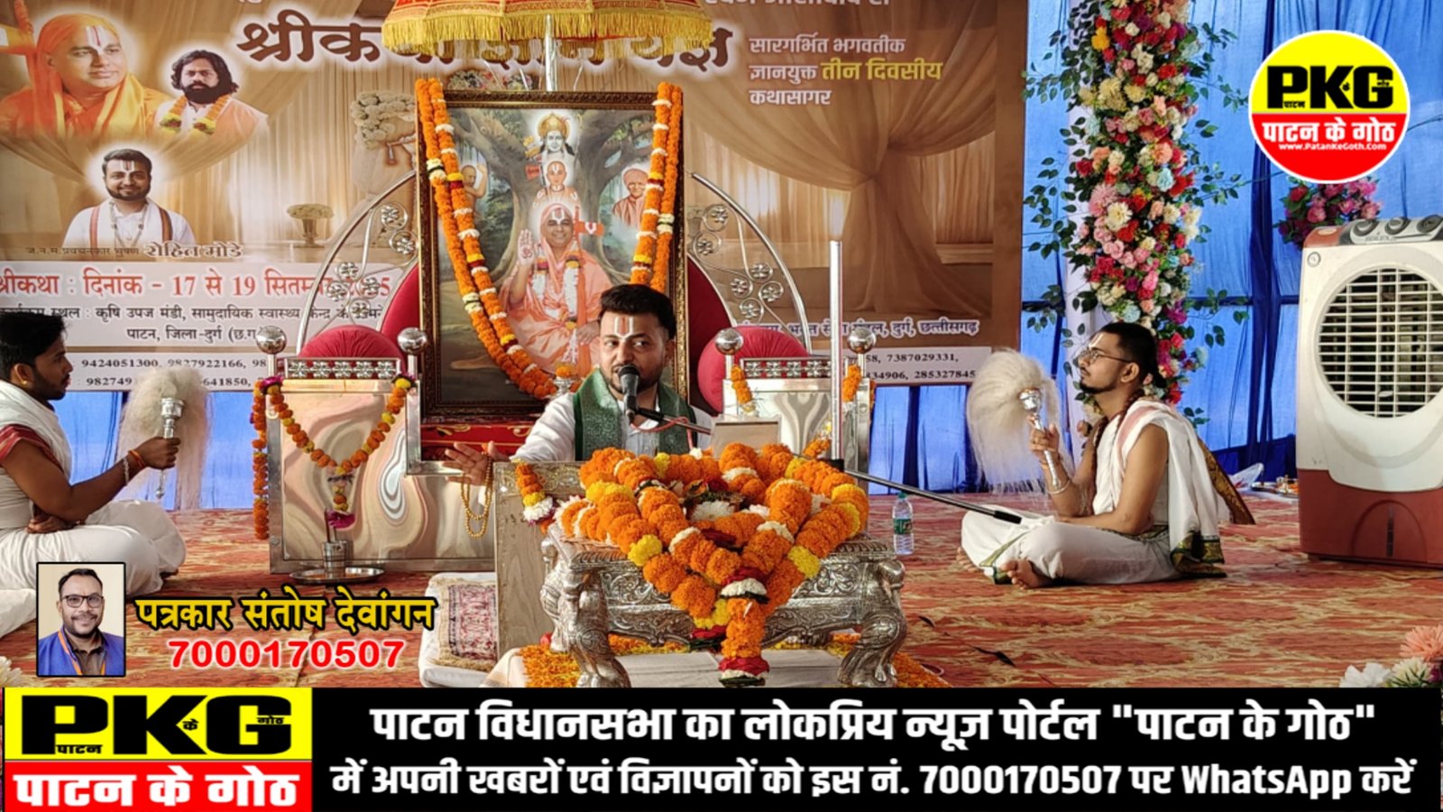 पाटन : 19 सितंबर – कृषि उपज मंडी परिसर में चल रहे श्री कथा यज्ञ के तीसरे दिन श्रद्धा और भक्ति का अद्भुत संगम देखने को मिला। व्यास पीठ से प्रवचन करते हुए श्रीरामानंदाचार्य नरेंद्रचार्य जी महाराज के कृपाप्राप्त शिष्य भूषण रोहित मोडे ने कहा कि “जिसने सदगुरु से दीक्षा ली, उसके जीवन का कल्याण सुनिश्चित है।