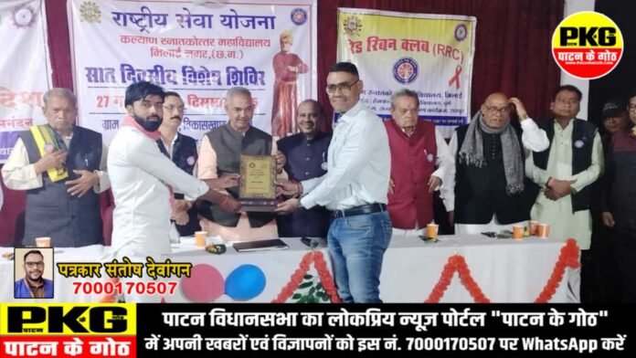 पाटन-दुर्ग। ग्राम दरबार मोखली में कल्याण कॉलेज भिलाई द्वारा 27 नवंबर से 3 दिसंबर तक आयोजित सात दिवसीय राष्ट्रीय सेवा योजना (NSS) विशेष शिविर का शुभारंभ उत्साहपूर्ण माहौल में हुआ। शिविर का नेतृत्व कार्यक्रम अधिकारी मुकेश वर्मा और ग्राम की सरपंच के मार्गदर्शन में किया जा रहा है।